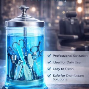 Glass Disinfectant Jar for Barbers & Salons – Professional Sterilizer Jar for Nail Tools, Clippers & Barber Supplies Barber tool cleaning jar- 21 oz