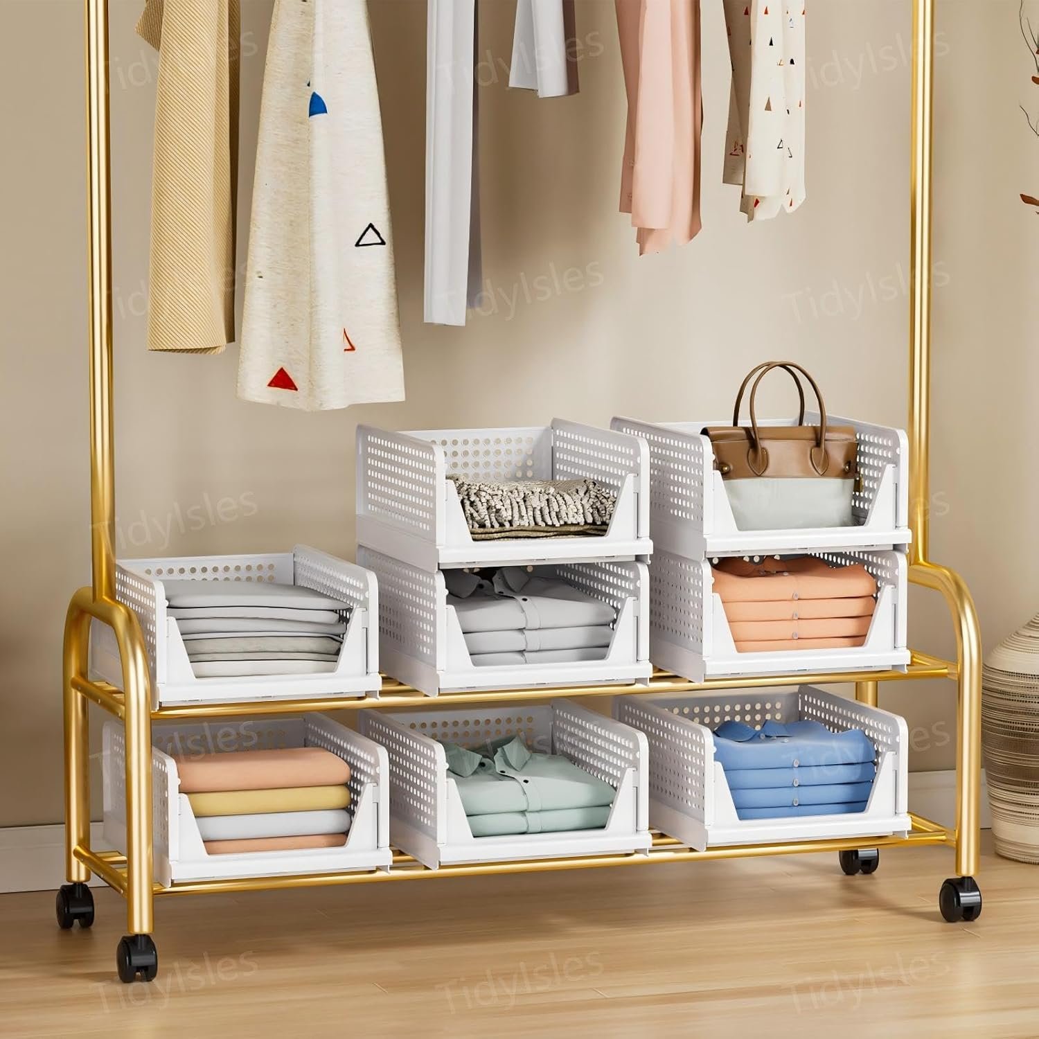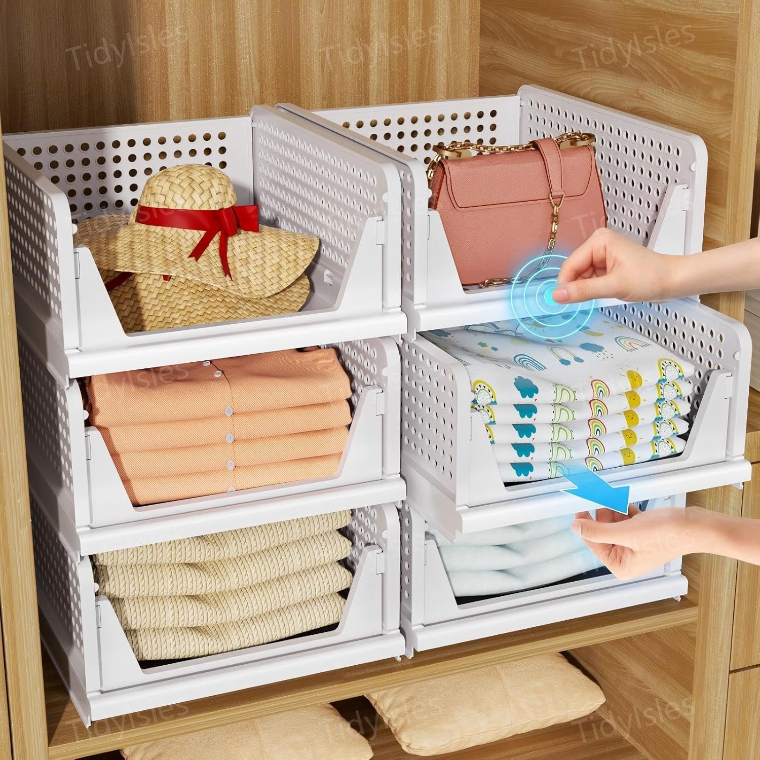 Create a vertical storage setup with these stackable closet organisers, perfect for maximising limited space. - Front Access Drawer Style