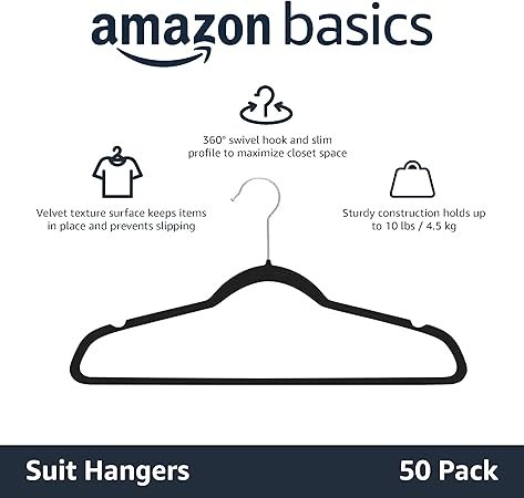 Basics Slim Velvet Non-Slip Suit Hangers – Pack of 50, Black